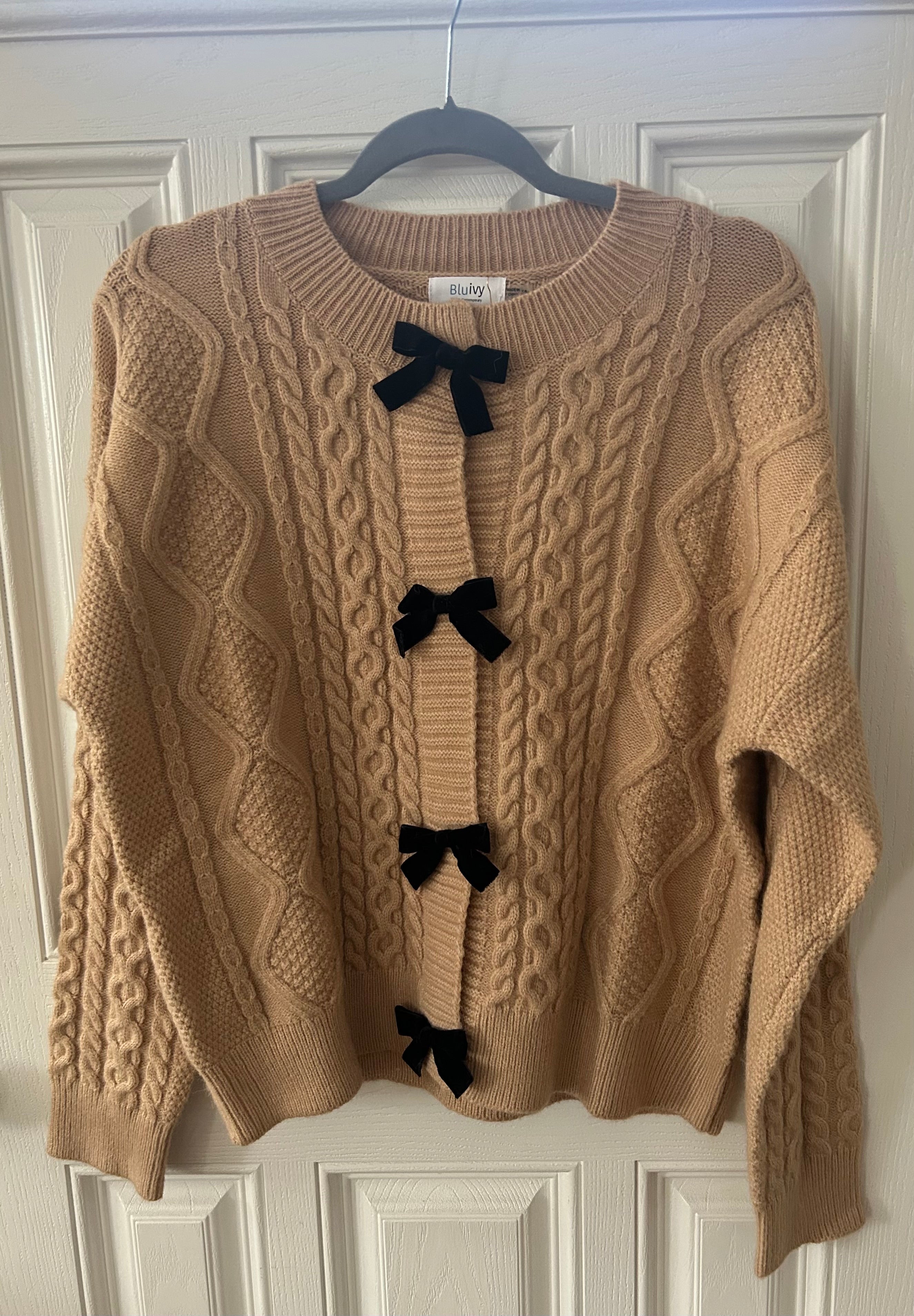 BluIvy Tan Cardigan with Bows